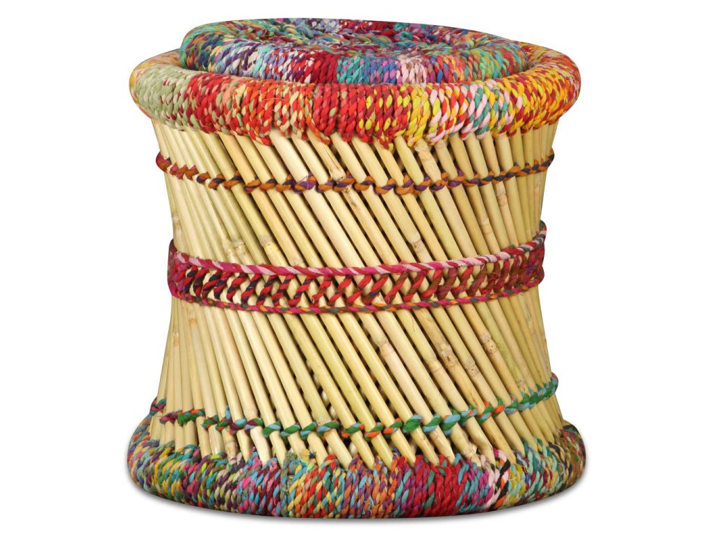 Stoličky jsou vyrobeny z bambusu, a proto vypadají velice přirozeně. Buď si na ně můžete hodit nohy po dlouhém pracovním dni, nebo je můžete použít jako odkládací stolek. Nemusíte se na ně bát vystavit dekorativní předměty, jako jsou mísy s ovocem a vázy, ale také jídlo a nápoje. Železné nožky jsou totiž stabilní a hodně toho vydrží.