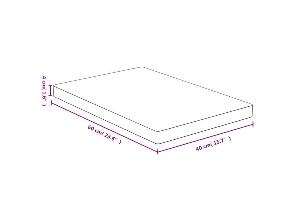 - Rozměry: 40 x 60 x 4 cm (D x Š x T)