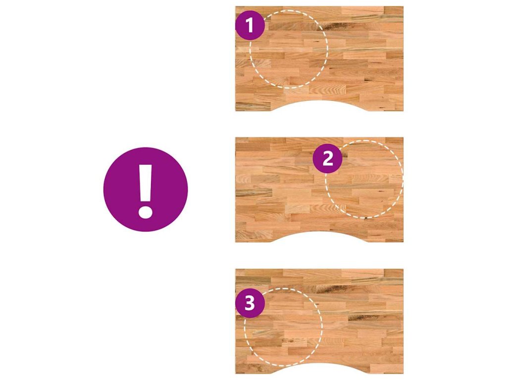 - Doporučujeme použít šroubovák místo elektrické vrtačky, aby při upevňování nohou dřevo nepraskalo.