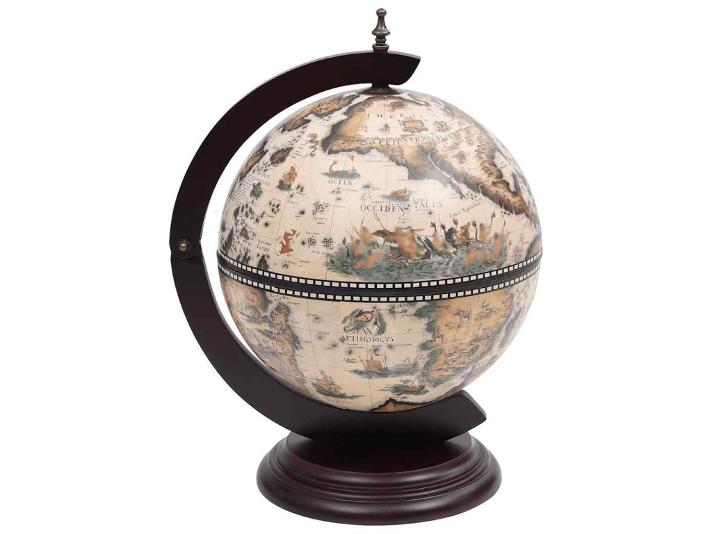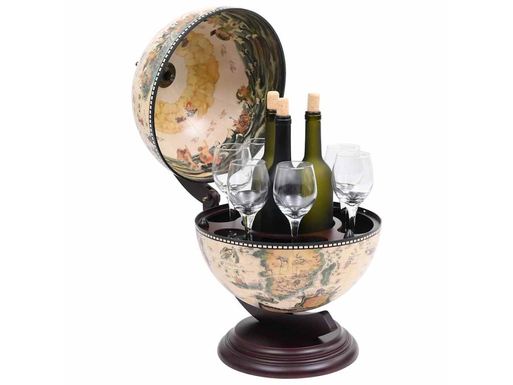 Vnější povrch globusového baru je obalen replikou námořní mapy z 16. století a uvnitř je vyzdoben kopiemi starobylých fresek, takže jde o opravdový umělecký kousek a skvělou dekoraci pro domácnost i kancelář.
