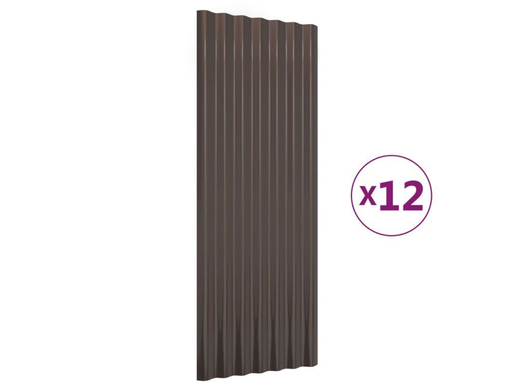 Střešní panely 12 ks pozinkovaná ocel hnědé 100 x 36 cm 319144