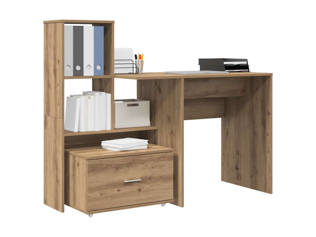 - Integrované úložné komponenty: S polici a zásuvkami z inženýrského dřeva ti stůl poskytne dostatek místa na knihy, dokumenty a kancelářské potřeby. Pomáhá udržet pracovní prostor v pořádku a funguje jako stůl i úložná jednotka.