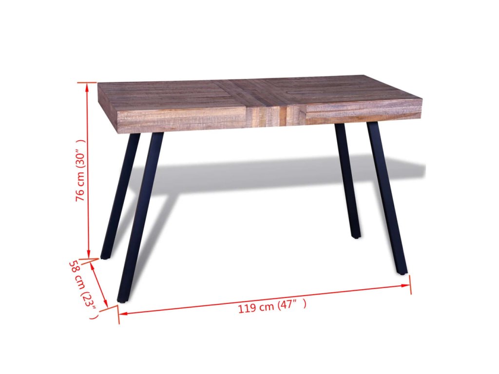 Tento exotický stůl je vyroben z regenerovaného dřeva, což znamená, že každý kus nábytku je jedinečný a poněkud se liší jeden od druhého. Regenerované dřevo je pevné, stabilní, odolné a krásné. Jeho částečně ruční a řemeslná výroba přispívá k jedinečnému stylu vintage stolu. Velká péče je poskytována na každém kroku výrobního procesu, jako rekombinaci, leštění nebo malování.
