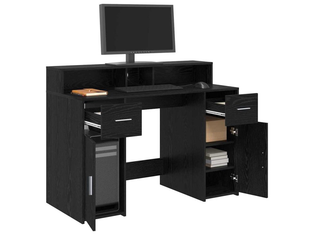 - Efektivní úložné řešení: Díky zásuvkám, dvířkům a policím, tento stůl se zaměřuje na to, aby splnil všechny tvoje úložné potřeby. Oddělení jsou pečlivě uspořádaná, takže máš důležité dokumenty, kancelářské potřeby a gadgety vždy po ruce. Tím udržíš prostor uklizený, což ti pomůže být efektivnější.