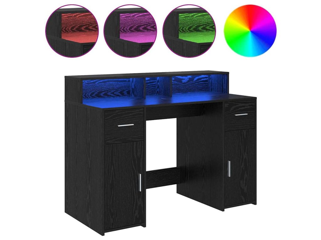 - Integrované LED osvětlení: Stůl má LED pásky, které osvětlují tvůj pracovní prostor příjemným světlem. Pomohou ti lépe vidět a snížit únavu očí. Osvětlení si můžeš snadno přizpůsobit podle své nálady nebo denní doby – to je super praktické!