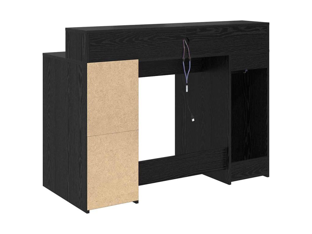- Texturované inženýrské dřevo: Tento LED stůl je vyroben z texturovaného inženýrského dřeva. Nejen, že vypadá moderně, ale taky je odolný a vydrží každodenní používání. Hluboká černá dubová úprava dodává eleganci, skvěle se hodí k různým stylům interiéru. Tento robustní materiál je navržen tak, aby dlouho vydržel, což z něj dělá skvělou investici do stylu i funkce.