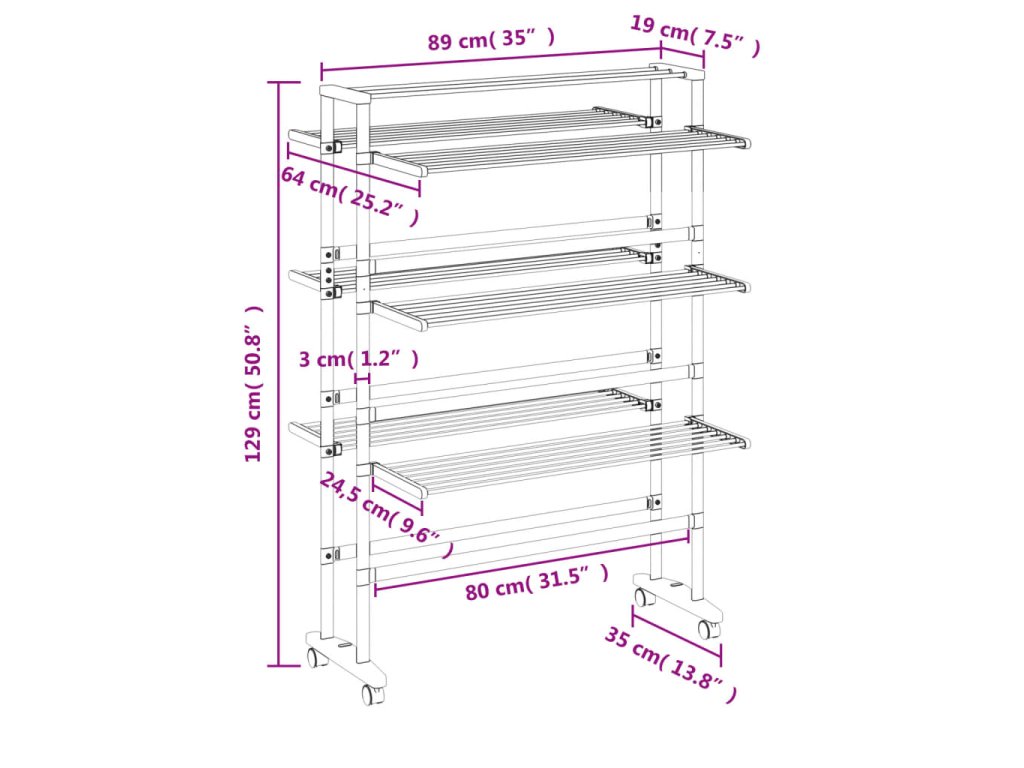 Tento 3patrový sušák na prádlo je ideální volbou pro rodiny s omezeným prostorem pro sušení prádla!