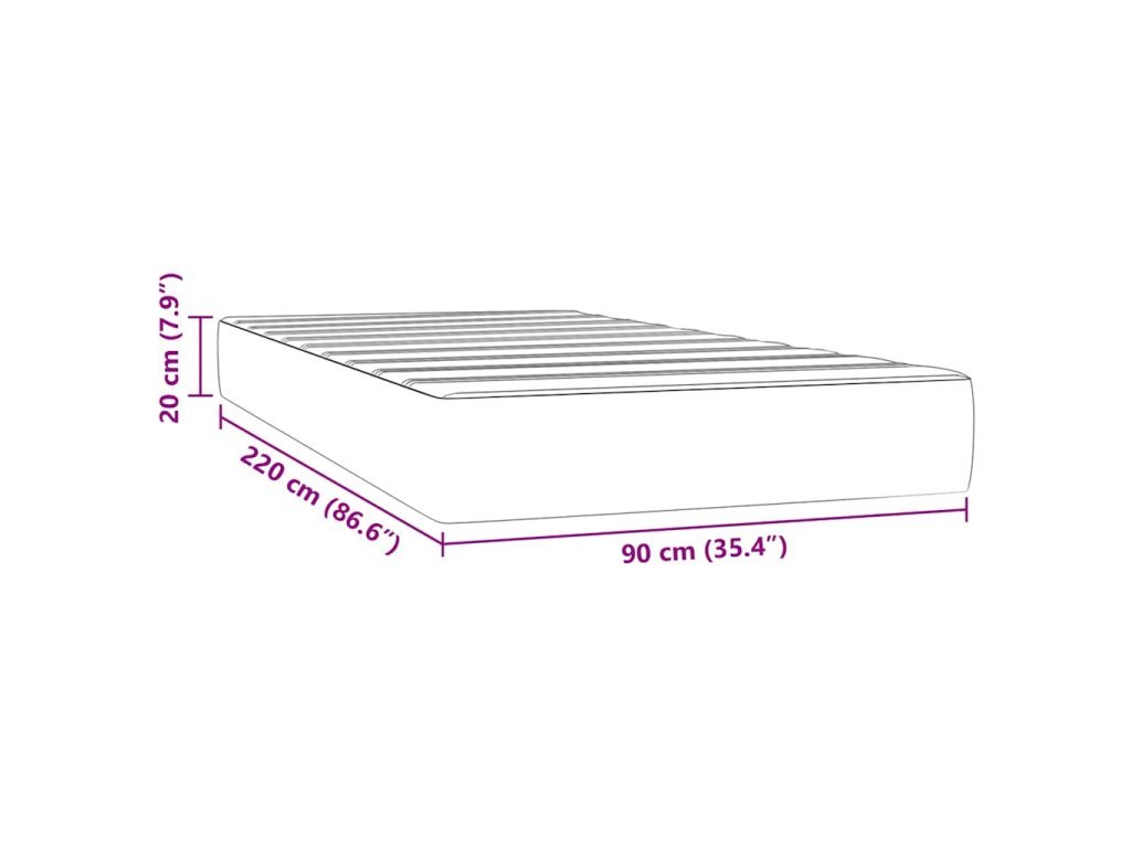 - Rozměry: 90 x 220 x 20 cm (Š x D x V)