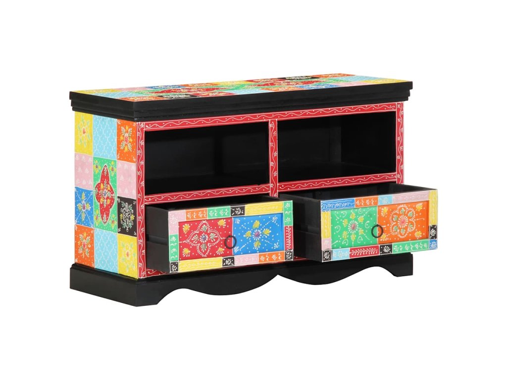 - Součásti Skříň má zásuvky ve vícebarevném stylu, který dává živý dotek a spojuje vzhled s praktičností. Každá zásuvka se hladce otvírá a má dost místa na DVD, herní věci a dálkový ovladače.