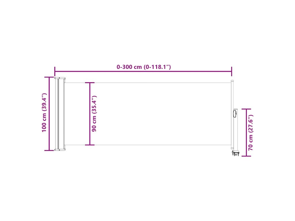 Terasová zatahovací boční markýza 100 x 300 cm šedá 45186