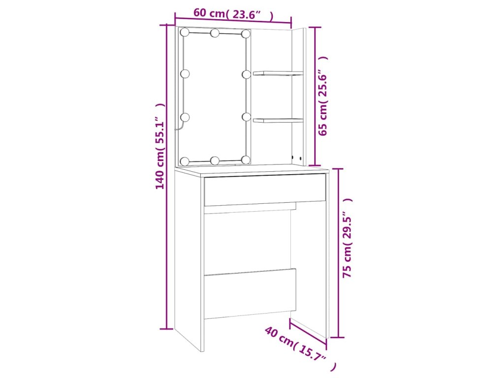 Toaletní stolek s LED bílý 60 x 40 x 140 cm 808828