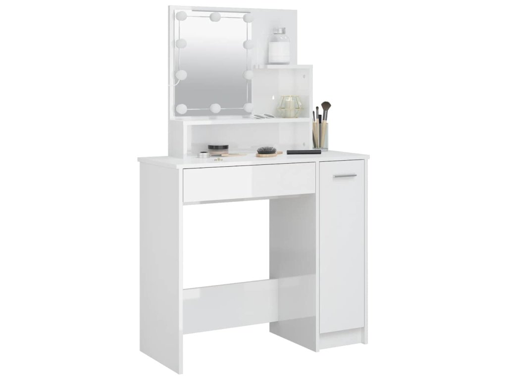 Toaletní stolek s LED lesklý bílý 86,5 x 35 x 136 cm 808816
