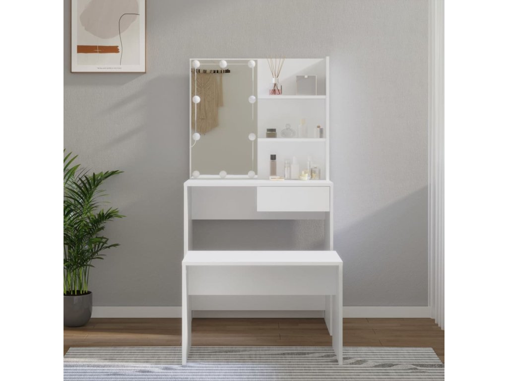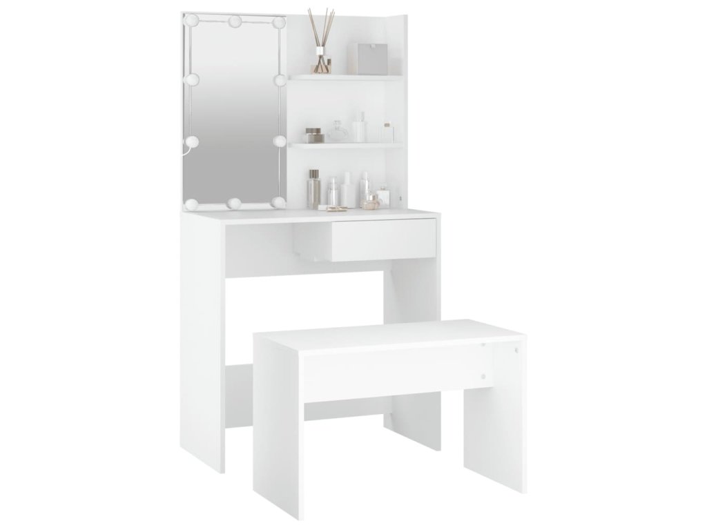 Tento moderní toaletní stolek s příslušenstvím dodá vaší ložnici nadčasový, rafinovaný vzhled. Set toaletního stolku s LED je skvělým doplňkem do vaší ložnice a zároveň s ním budete mít kosmetiku hezky po ruce!