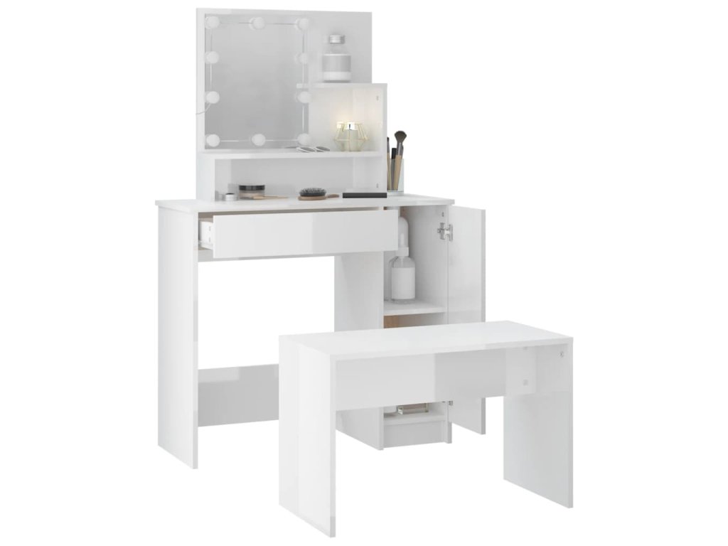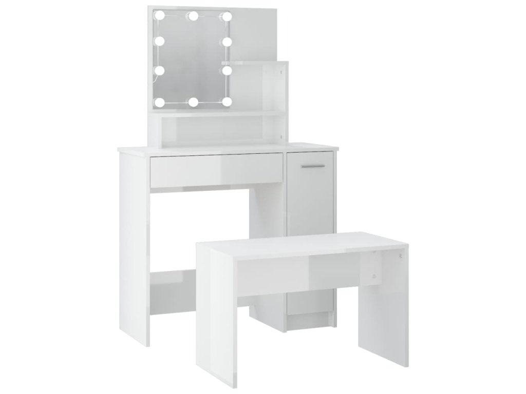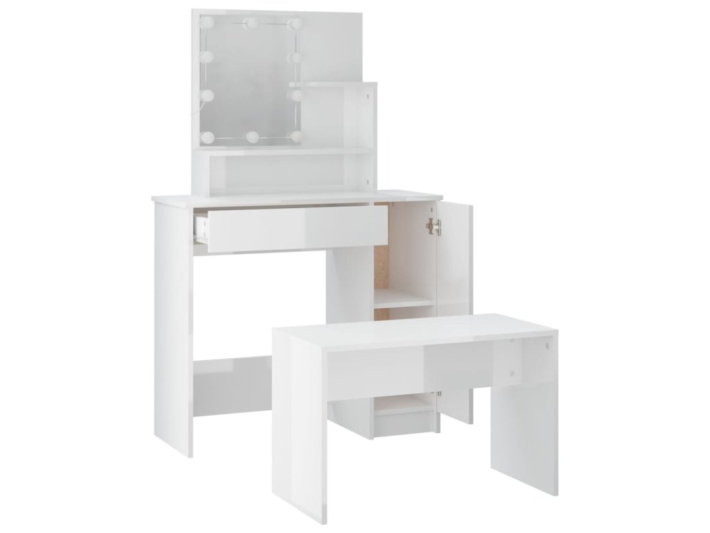 Toaletní stolek sada s LED bílý vysoký lesk kompozitní dřevo 3114119