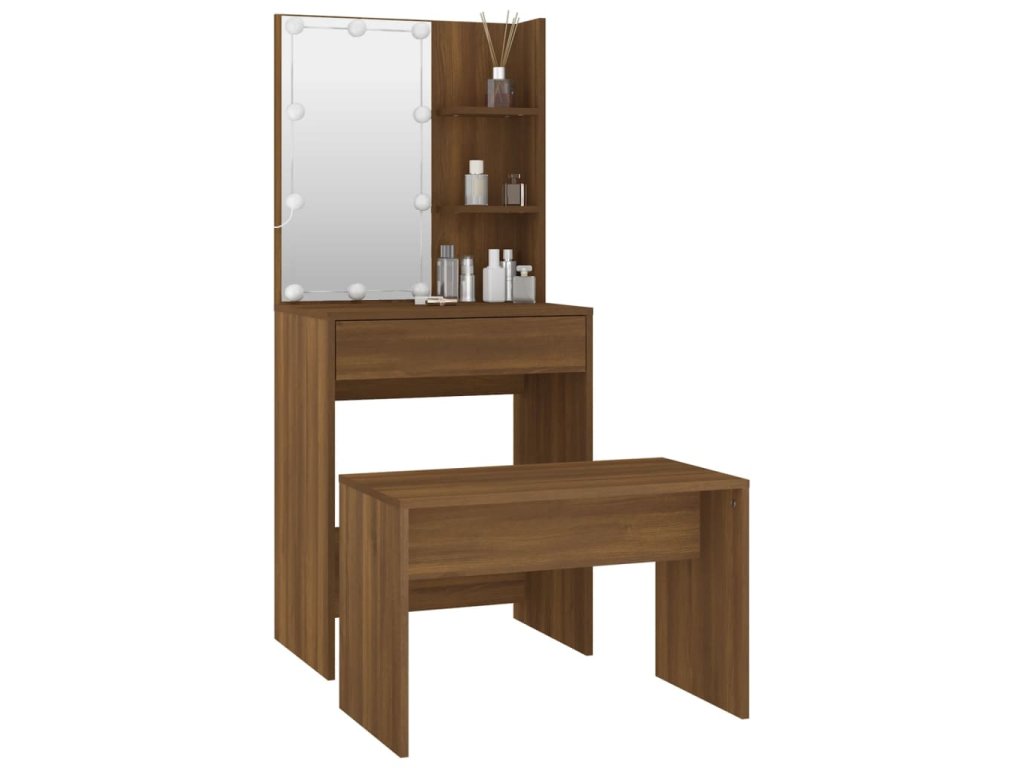 Toaletní stolek sada s LED hnědý dub kompozitní dřevo 3114138