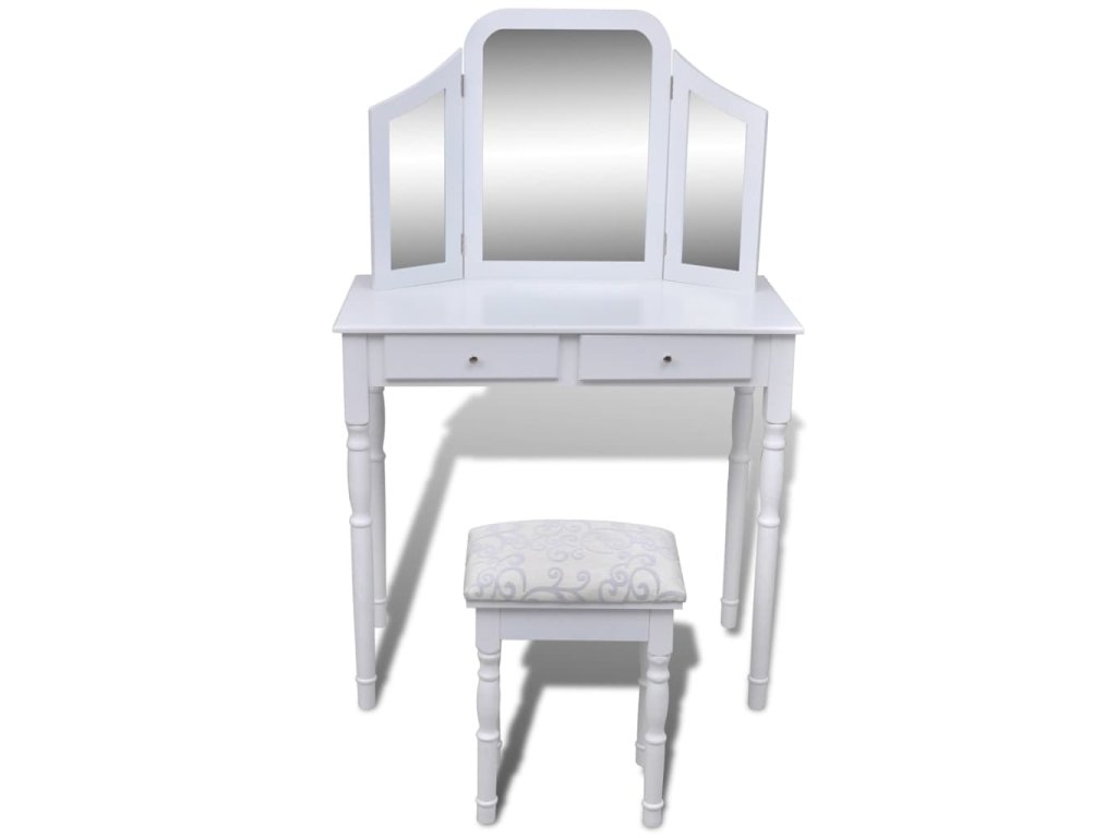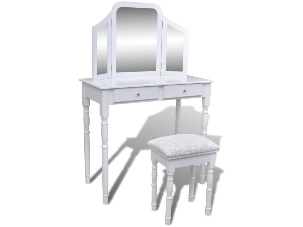 Toaletní stolek se zrcadlem 3 v 1, stoličkou a 2 šuplíky bílý 241003