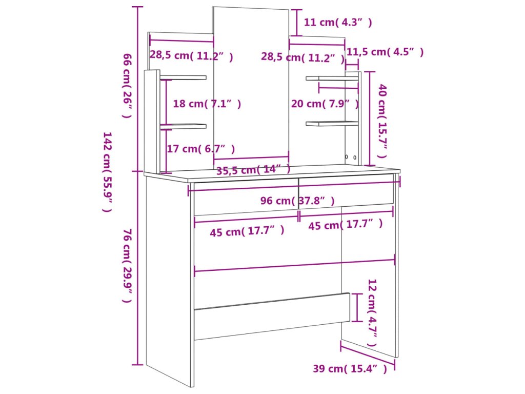 - Odolný materiál: Kompozitní dřevo je mimořádně kvalitní, má hladký povrch a vyznačuje se pevností, stabilitou a odolností proti vlhkosti. Tento kosmetický stolek je zhotovený z kompozitního dřeva, což usnadňuje jeho čištění.