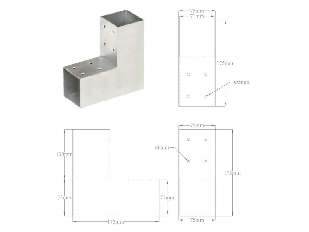 Elektricky galvanizovaná spojka umožňuje snadné připojení a spojení trámů nebo nosníků. Všechny spojky jsou předvrtané. Tato trámová spojka je určená pro 2 čtvercové dřevěné trámy s hranou o délce 71 mm.