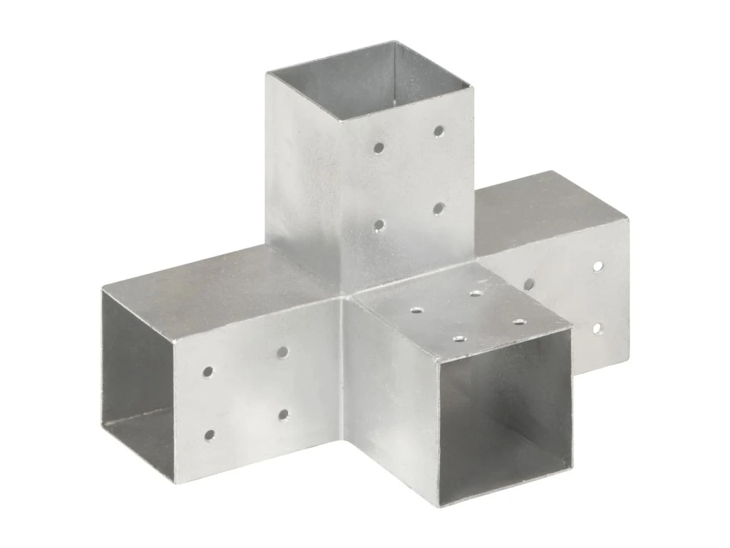 Elektrogalvanizovaná spojka umožňuje snadné připojení a spojení trámů nebo nosníků. Všechny spojky jsou předvrtané. Tato trámová spojka je určená pro 4 čtvercové dřevěné trámy s hranou o délce 81 mm.