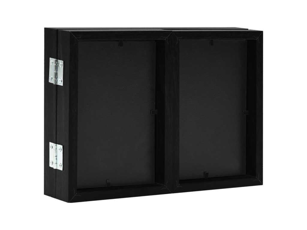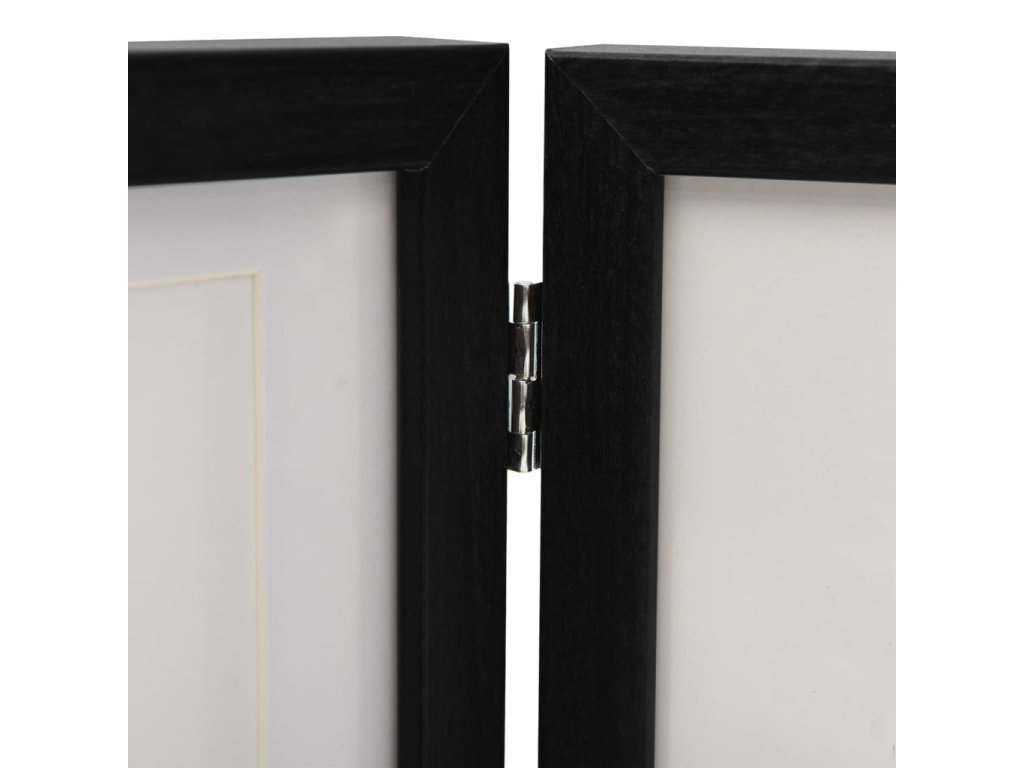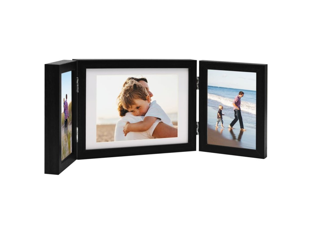 Koláž fotorámečků s panty má klasické rovné linie a oživí váš interiér moderním nádechem. Zadní deska z MDF s tvrdým PS materiálem na přední straně slouží jako ochrana. Fotografie je možné snadno vyměnit pomocí pojistky na zadní straně. Rámečky mají skládací provedení a mohou stát na stole bez podstavce.