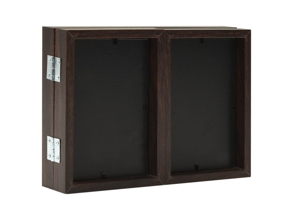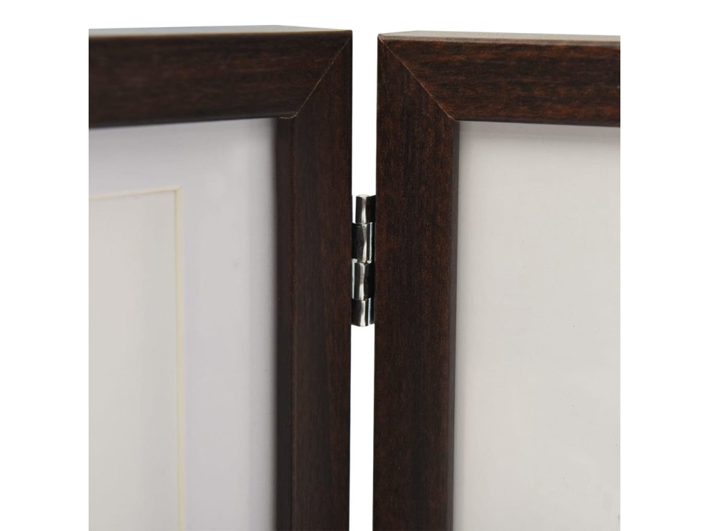 Koláž fotorámečků s panty má klasické rovné linie a oživí váš interiér moderním nádechem. Zadní deska z MDF s tvrdým PS materiálem na přední straně slouží jako ochrana. Fotografie je možné snadno vyměnit pomocí pojistky na zadní straně. Rámečky mají skládací provedení a mohou stát na stole bez podstavce.