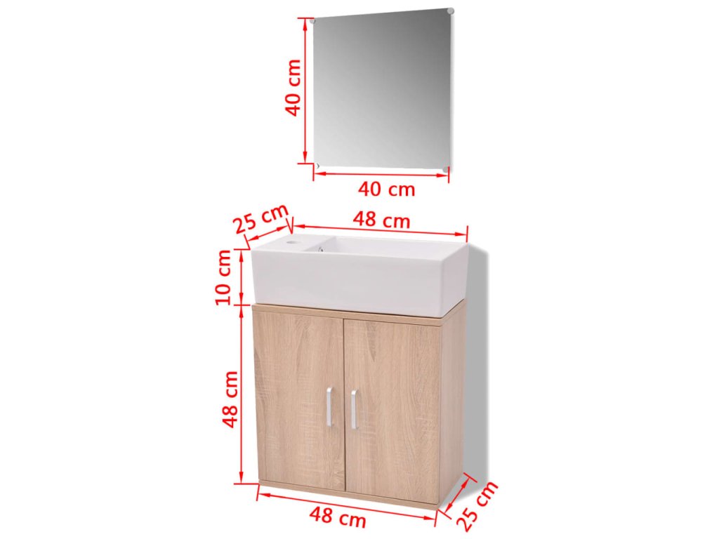 Sada nábytku sestává ze zrcadla a skříňky pod umyvadlo. Skříňka pod umyvadlo poskytuje dostatečný prostor pro ukládání vašich toaletních potřeb, zkrášlovacích přípravků a různých druhů drobných předmětů. Tato koupelnová skříňka, vyrobená z vysoce kvalitní dřevotřísky, je velmi robustní a odolná.