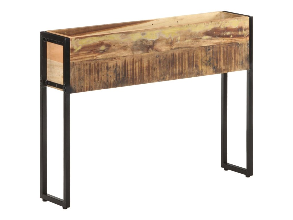 Truhlík je vyrobený z masivního recyklovaného dřeva, které pochází z trámů, podlah a podpěrných nosníků starých budov určených k demolici. Sestává tedy z různých druhů dřeva, jako je borovice, teak, dub, mangovník, akácie apod. Recyklované dřevo tak nabývá vlastností všech těchto rozličných typů dřevin. Navíc je již zestárlé, ošlehané a vyschlé, takže se nesmršťuje ani neohýbá. Stabilitu truhlíku zajišťuje práškově lakovaný železný rám. Vyvýšený záhon je v ideální výšce, takže můžete o své rostliny pečovat pohodlně, aniž byste namáhali záda a kolena a rychle se unavili. Truhlík je také prostorově úsporný a prostor pod truhlíkem můžete využít k uložení semen, země, kropáče apod.