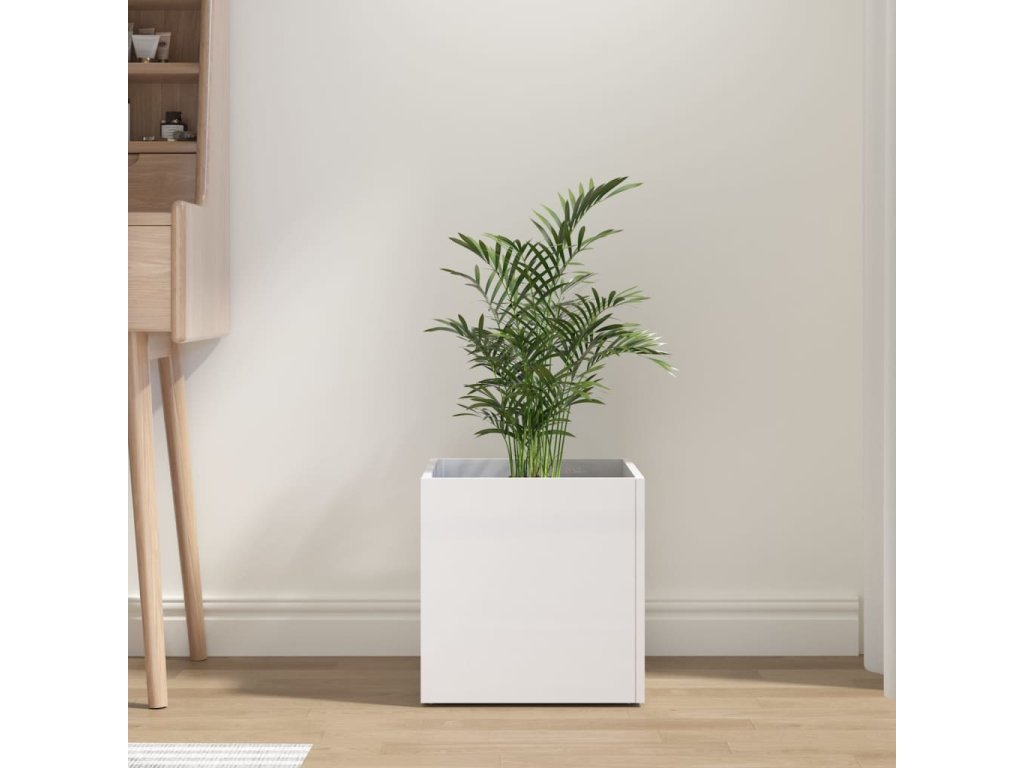 Truhlík bílý s vysokým leskem 40 x 40 x 40 cm kompozitní dřevo 808798