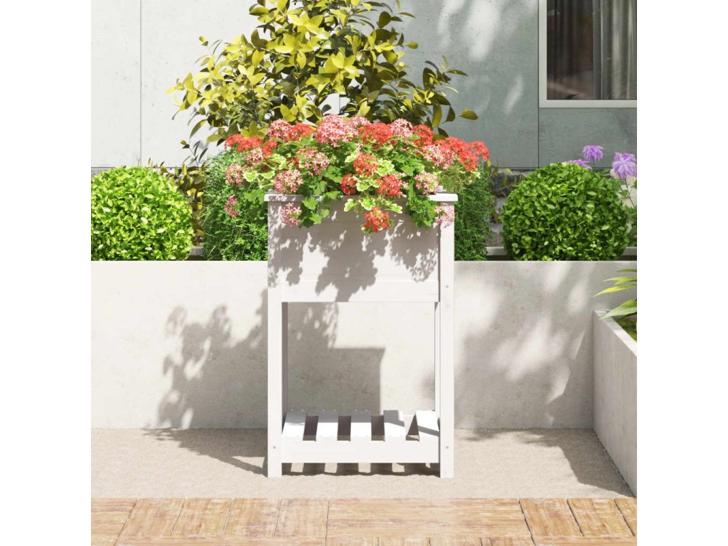 - Praktická police: Zahradní truhlík je vybaven policí, na kterou můžete uschovat zeminu a příslušenství k rostlinám, kde je budete mít po ruce.