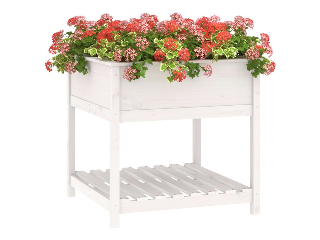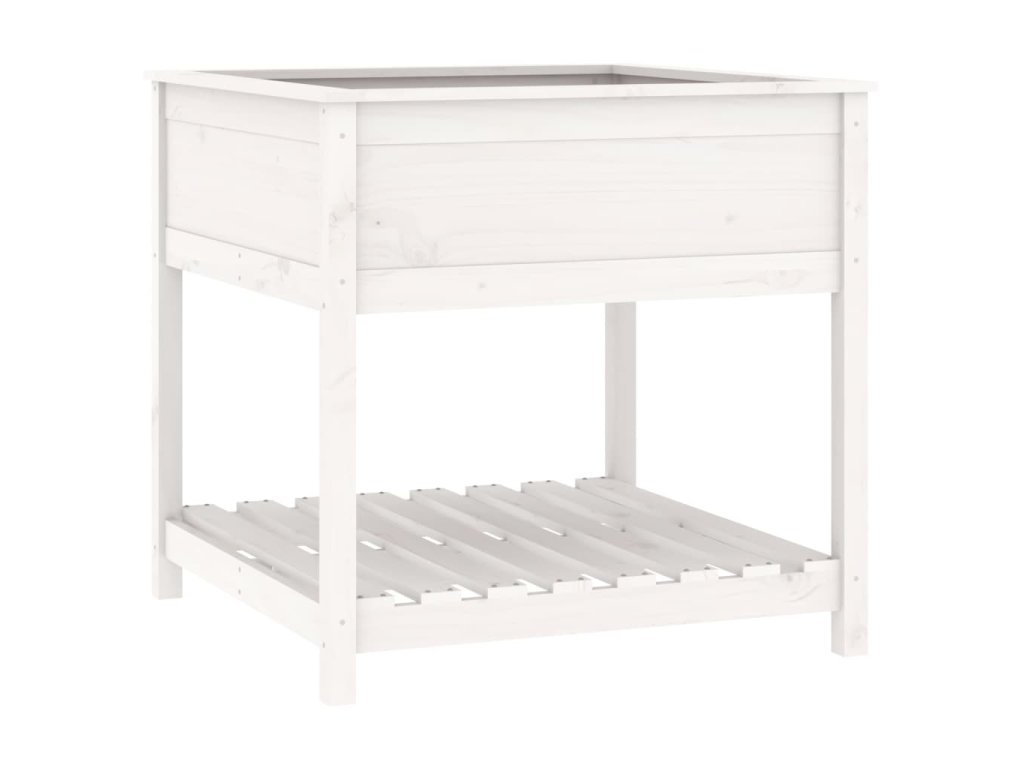 Truhlík s policí bílý 82,5 x 82,5 x 81 cm masivní borové dřevo 823795
