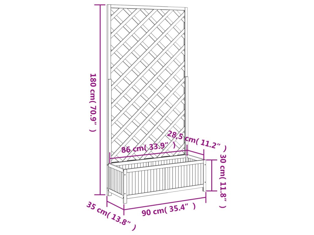 Tento dřevěný truhlík s treláží představuje skvělé řešení pro pěstování popínavých rostlin na zahradě, verandě nebo terase.