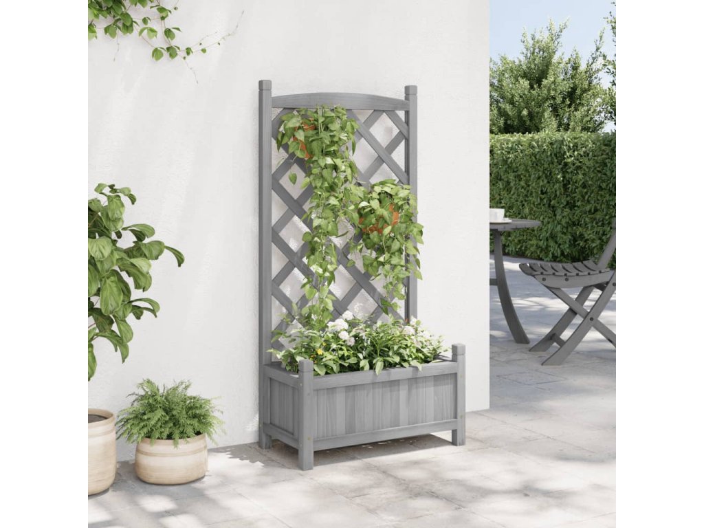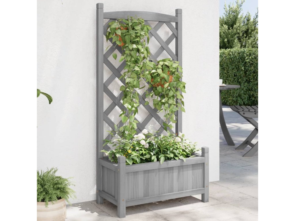Tento dřevěný truhlík s treláží představuje skvělé řešení pro pěstování popínavých rostlin na zahradě, verandě nebo terase.