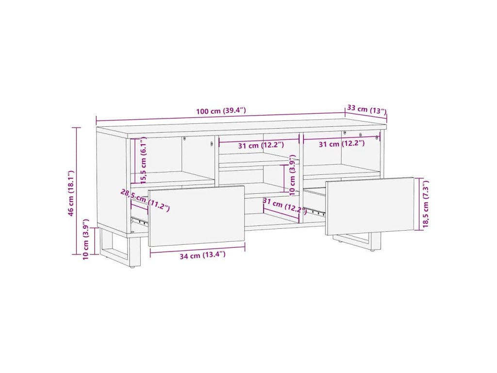 - Moderní design zásuvek: Tradiční zásuvky s úchytkami umožňují snadný přístup, zatímco zachovávají minimalistický vzhled. Tato zásuvka je ideální pro ukládání TV ovladačů, herních ovladačů nebo různých doplňků a pomáhá udržet váš obývací pokoj uklizený a uspořádaný.