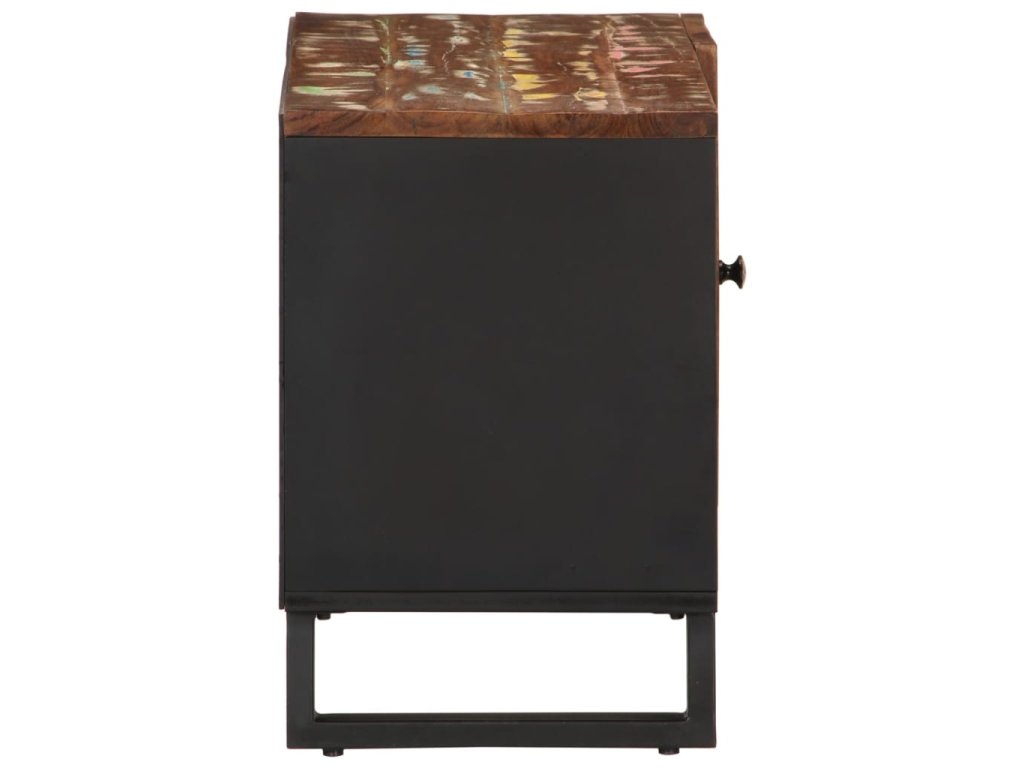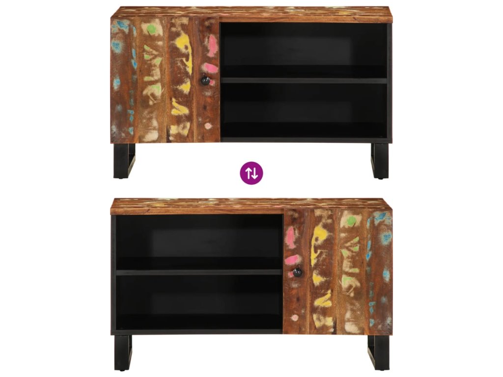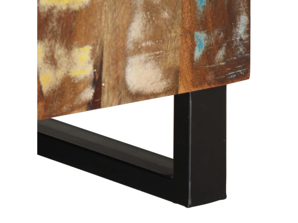 - Masivní recyklované dřevo: Tato mediální skříňka je vyrobena z masivního recyklovaného dřeva v kombinaci s kompozitním dřevem. Masivní recyklované dřevo se skládá z opakovaně použitých dřevin, jako je teak, mangovník, borovice a buk. Toto dřevo pochází ze starých staveb, jako jsou továrny, kůlny a lodě.