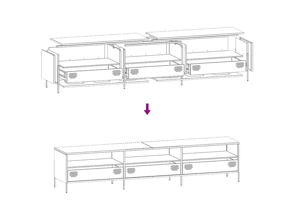 Tato bytelná TV skříňka v industriálním stylu se stane nadčasovým doplňkem vašeho obývacího pokoje nebo ložnice.