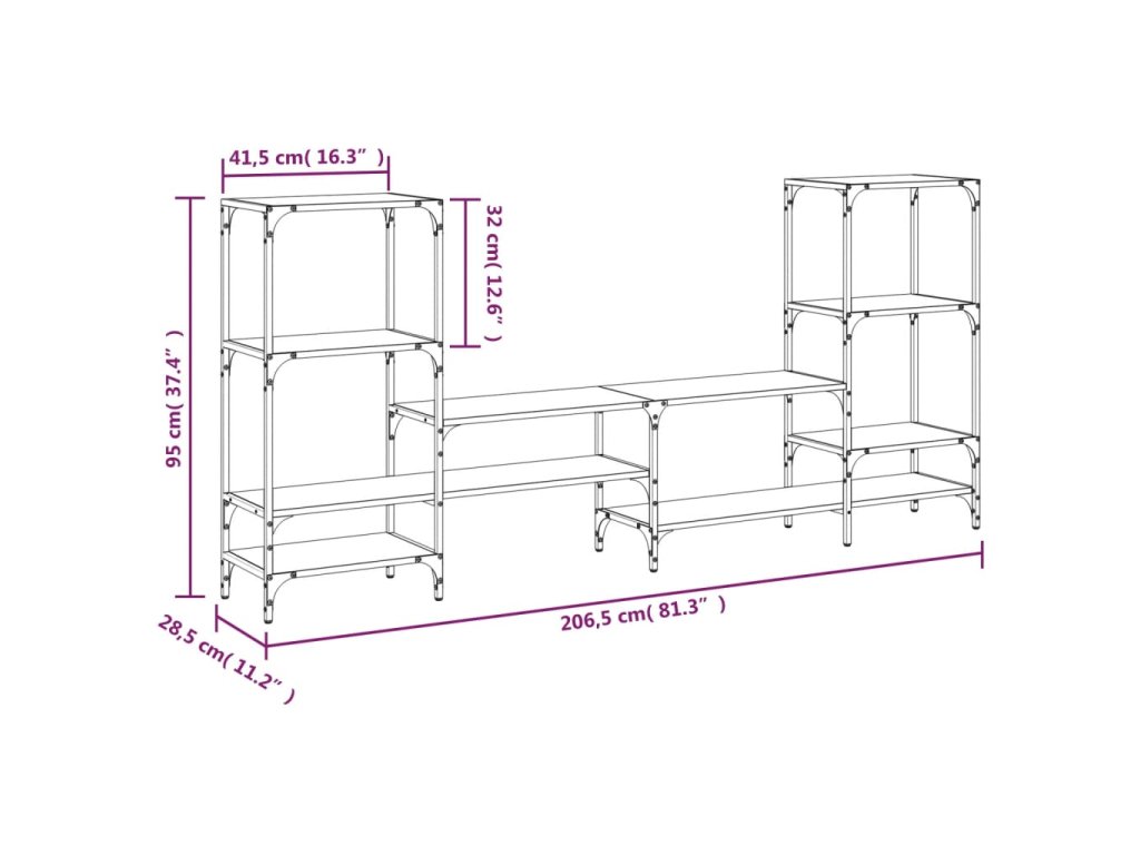 TV skříňka černá 206,5 x 28,5 x 95 cm kompozitní dřevo 842481
