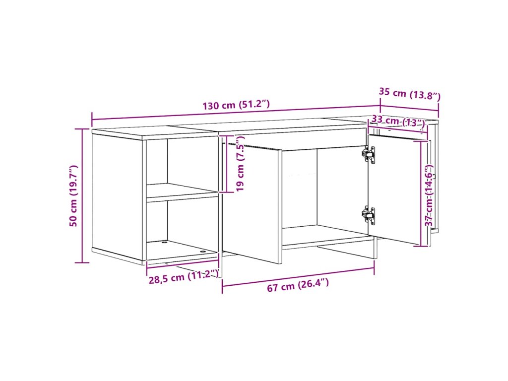 - Robustní horní deska: Horní část televizní skříňky poskytuje bezpečný povrch pro vystavení dekorativních předmětů, zarámovaných fotografií nebo pokojových rostlin.