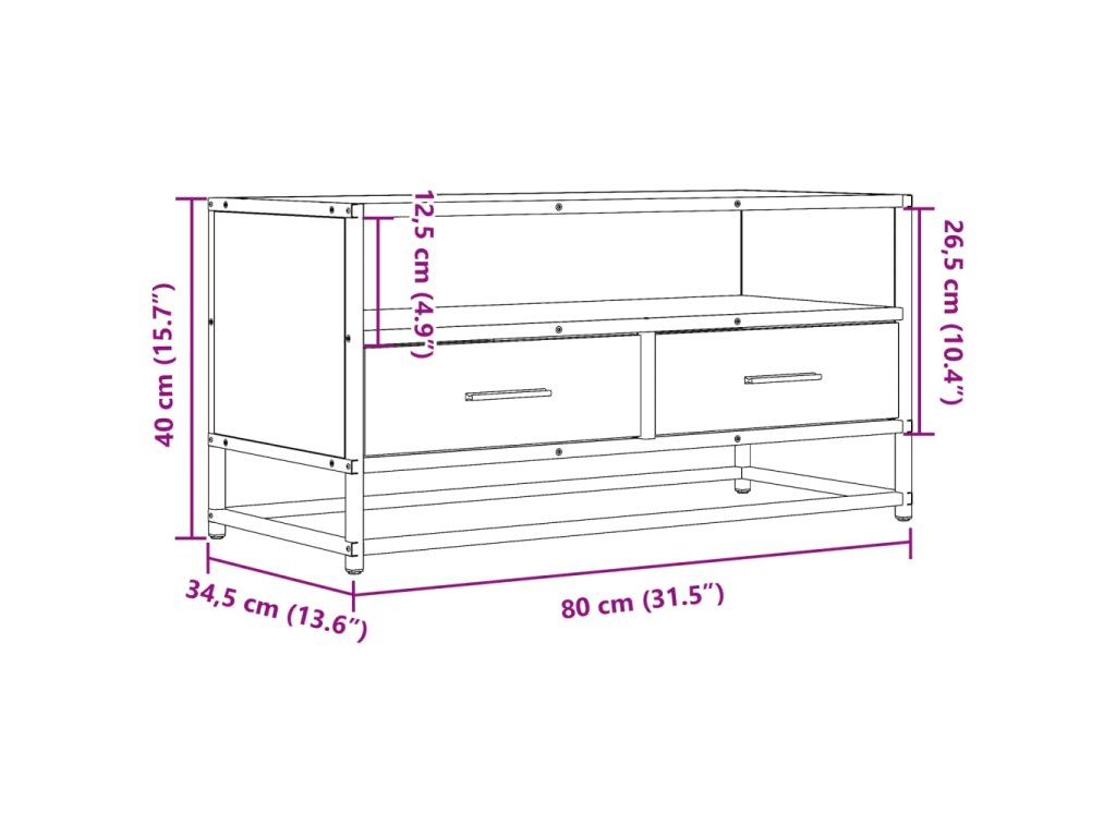 TV skříňka dub sonoma 80 x 34,5 x 40 cm kompozitní dřevo a kov 848810