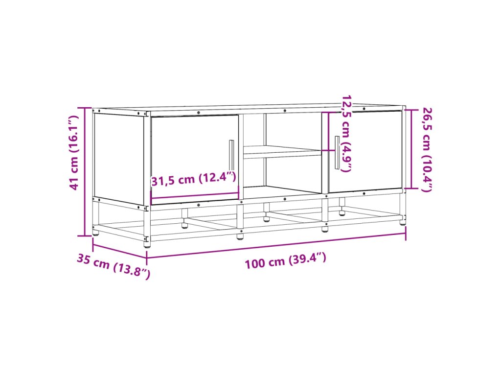 TV skříňka hnědý dub 100 x 35 x 41 cm kompozitní dřevo a kov 848838
