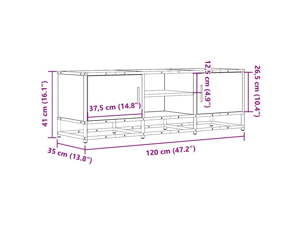 TV skříňka hnědý dub 120 x 35 x 41 cm kompozitní dřevo a kov 848843