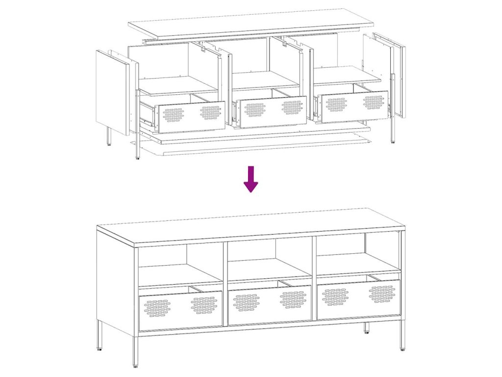 Tato bytelná TV skříňka v industriálním stylu se stane nadčasovým doplňkem vašeho obývacího pokoje nebo ložnice.