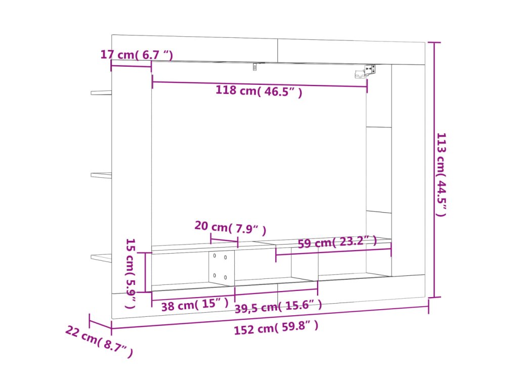 - Rozměry: 152 x 22 x 113 cm (Š x H x V)