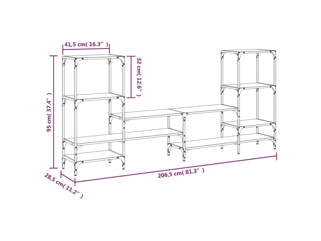 TV skříňka kouřový dub 206,5 x 28,5 x 95 cm kompozitní dřevo 842483