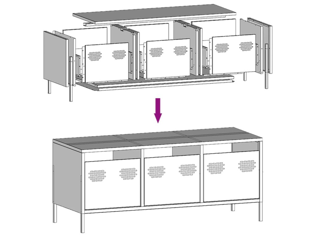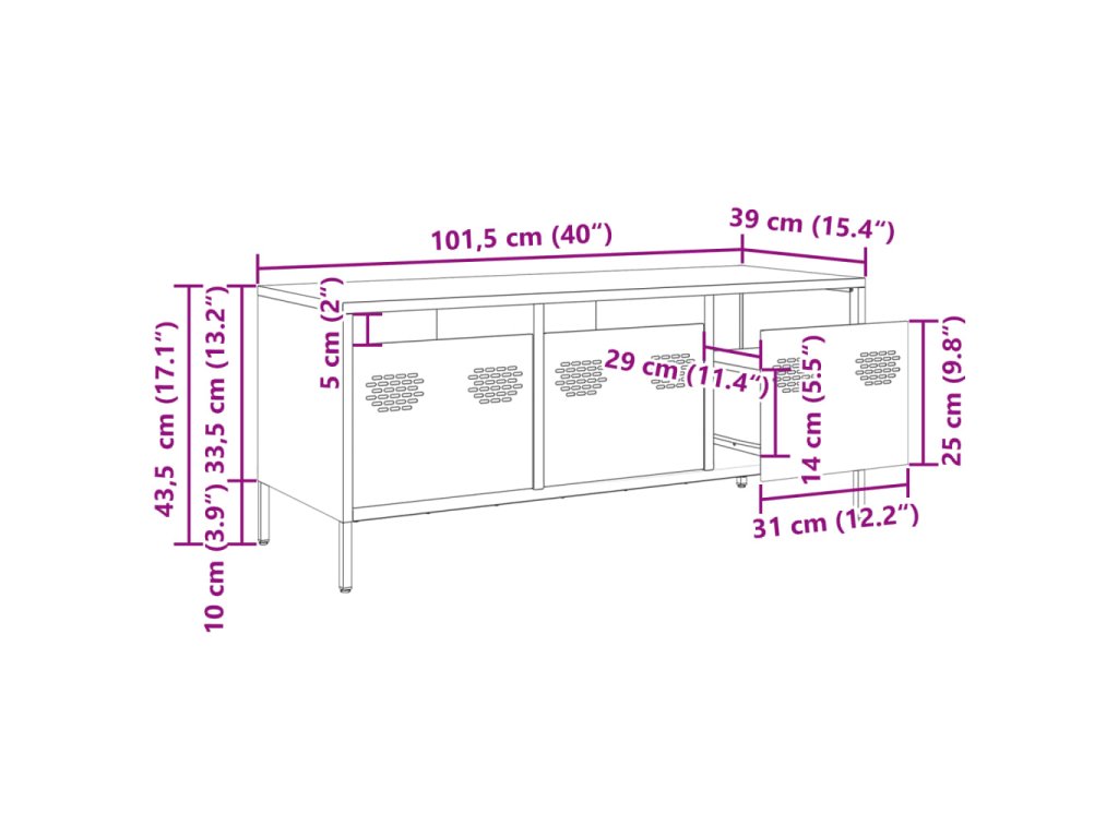 Tato bytelná TV skříňka v industriálním stylu se stane nadčasovým doplňkem vašeho obývacího pokoje nebo ložnice.