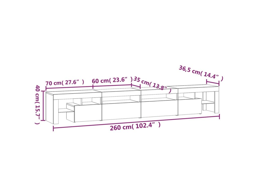 TV skříňka s LED osvětlením bílá 260x36,5x40 cm 3152818