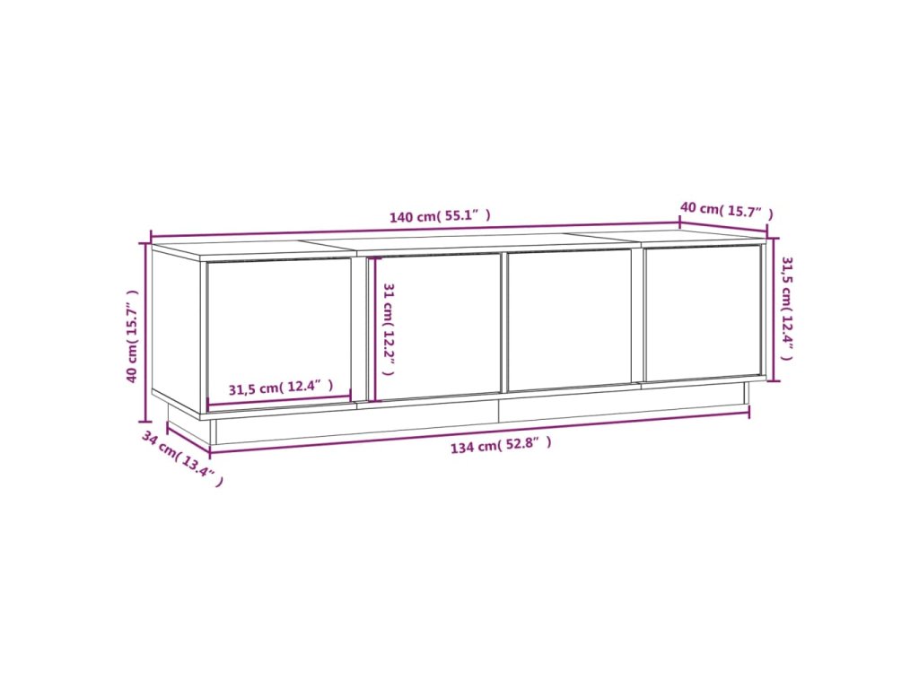 TV skříňka šedá 140 x 40 x 40 cm masivní borové dřevo 814461