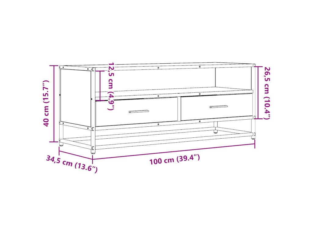 TV skříňka šedá sonoma 100x34,5x40 cm kompozitní dřevo a kov 848817