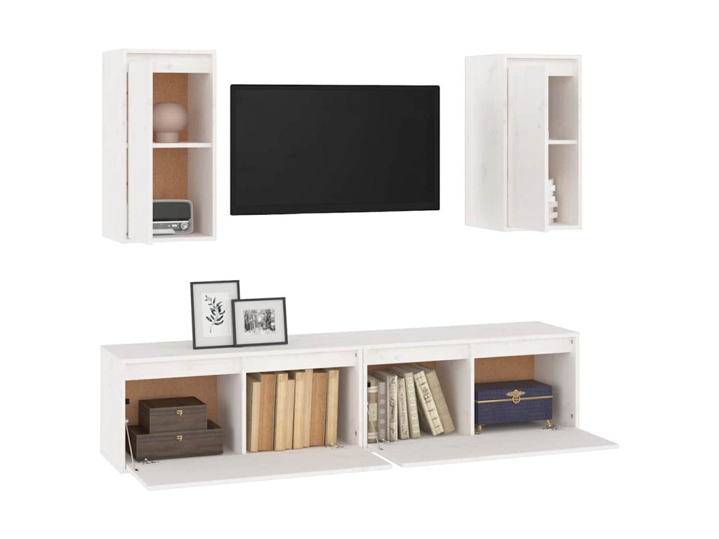 TV skříňky 4 ks bílé masivní borové dřevo 3100170