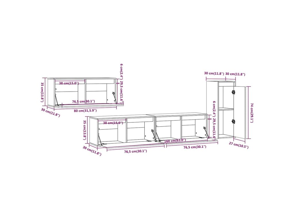 - 3x TV skříňka: 80 x 30 x 35 cm (Š x H x V)