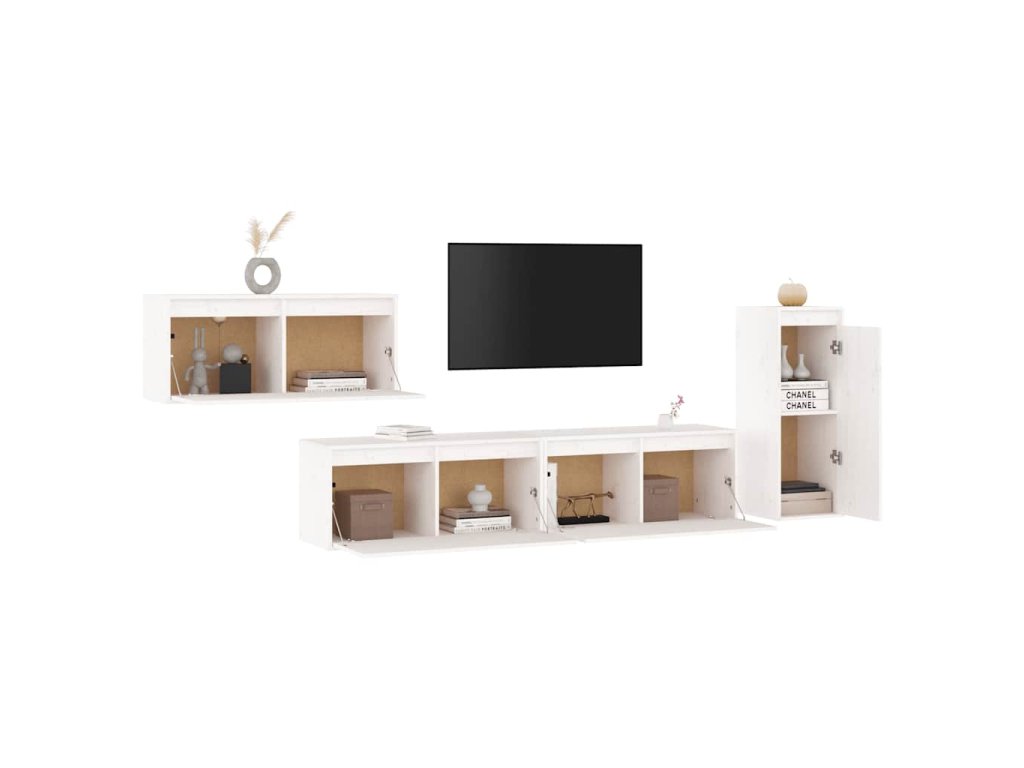TV skříňky 4 ks bílé masivní borové dřevo 3100220